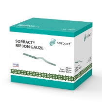 Sorbact® Ribbon Gauze är ett sterilt bakterie- och svampbindande sårförband. Det består av ett grönt Sorbact® sårkontaktlager som låter sårvätska passera igenom till ett sekundärförband.